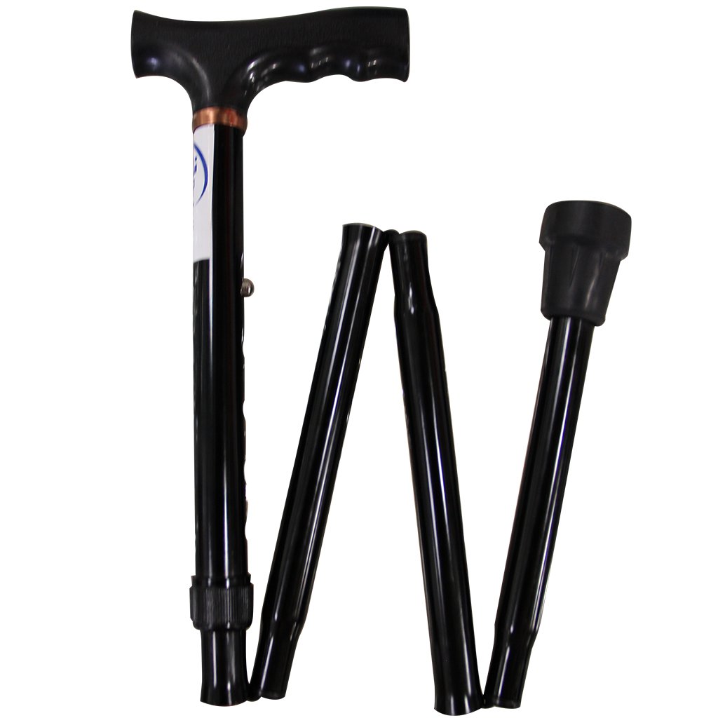 Se pliega en 4 partes para transportarlo y almacenarlo en su estuche incluido debido a que su mecanismo de plegado funciona con un elástico que permite plegar el bastón con facilidad