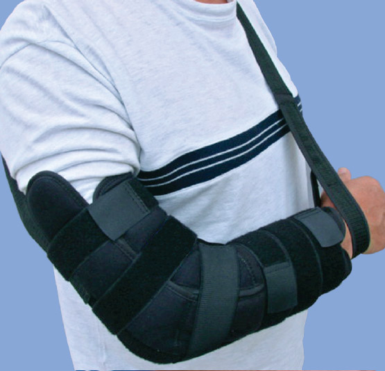 Cuenta con varillas de aluminio, además de una cinta que sostiene el peso del brazo.