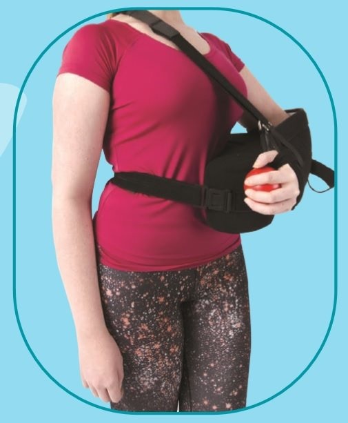 Inmovilizador de hombro hecho en dubetina con forro interior acojinado, consta de 2 arneses uno al hombro y el otro al torso y un cojín removible a base de hule espuma en forma anatómica.