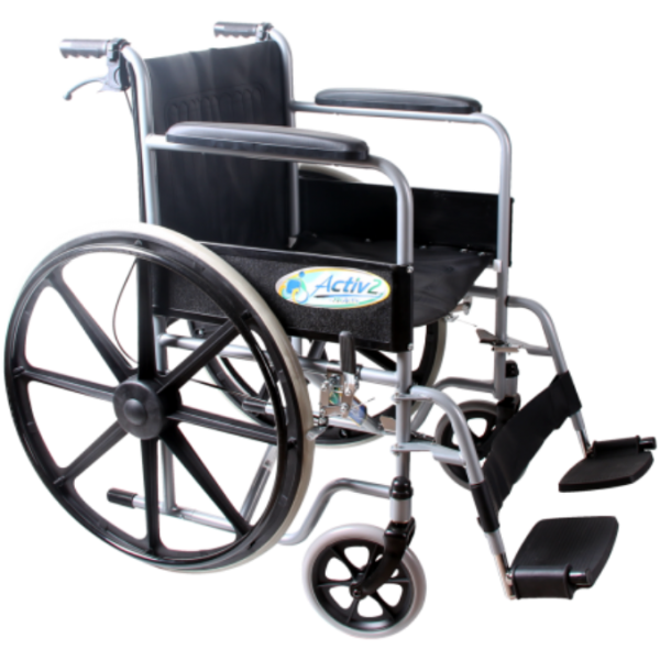 Silla de Ruedas «ACTIV2» con Brazos Fijos, Descansapies Abatibles y Desmontables, con Freno, Rueda Mag (R210010G-/F-M)