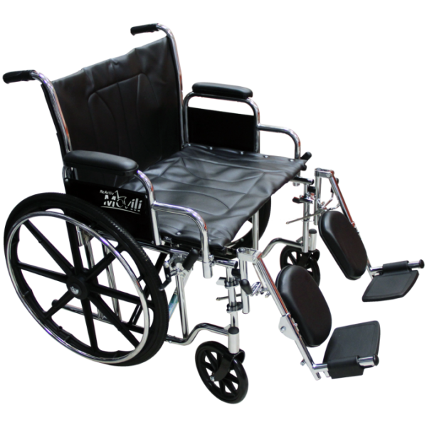 Silla de Ruedas con Brazos y Elevapiernas Desmontables Extra-Ancha de 20″, Tapicería Negra, Cromada (R208061-NG)