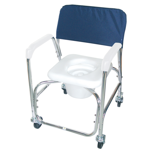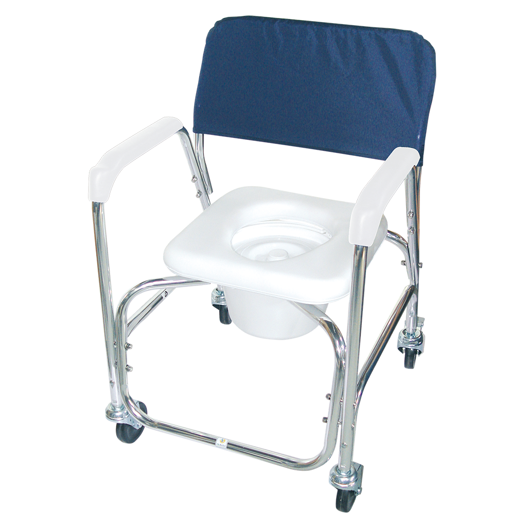 Silla Cómodo Ducha ReActiv de Aluminio, con Ruedas, Acojinado, Aluminio Natural, Respaldo zul (R219091)